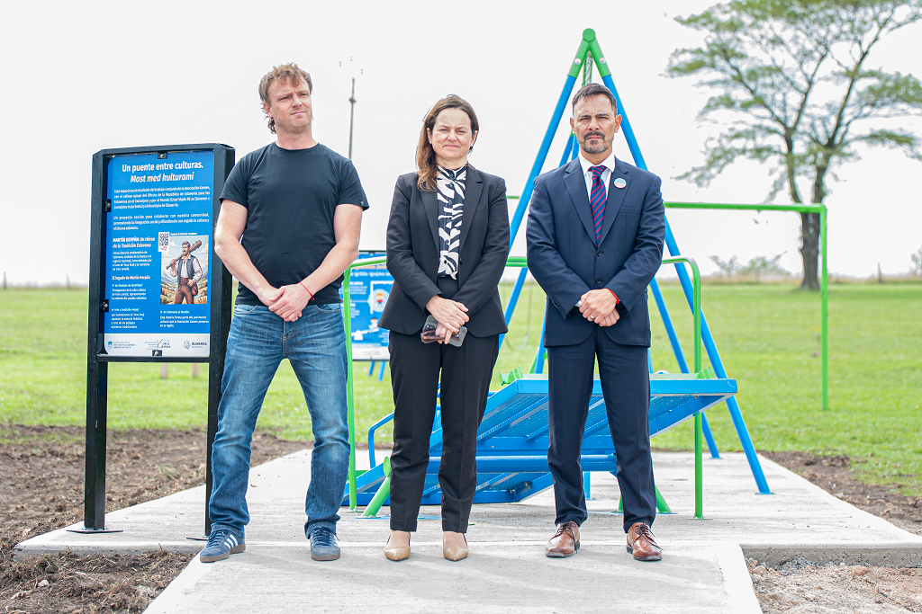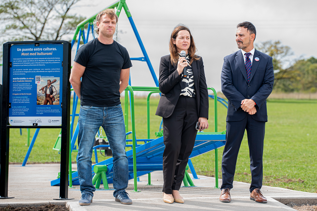 El pasado 11 de abril quedó inaugurada la plaza de juegos inclusiva, para dicho evento tuvimos el honor de recibir a la Embajadora de Eslovenia en Argentina Tina Vodnik, el Intendente de la ciudad Maximiliano Wesner, delegado municipal Gabriel Suburu, Unión de Colectividades de Olavarría, Tandil, Casa y Cultura de Loma Negra, familiares, amigos.